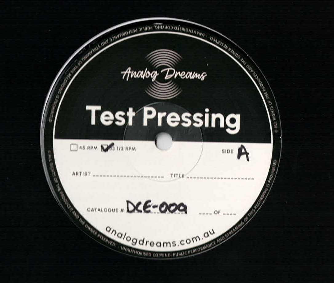 This limited test pressing version does not have the original artwork, only the Analog Dreams test pressing label.